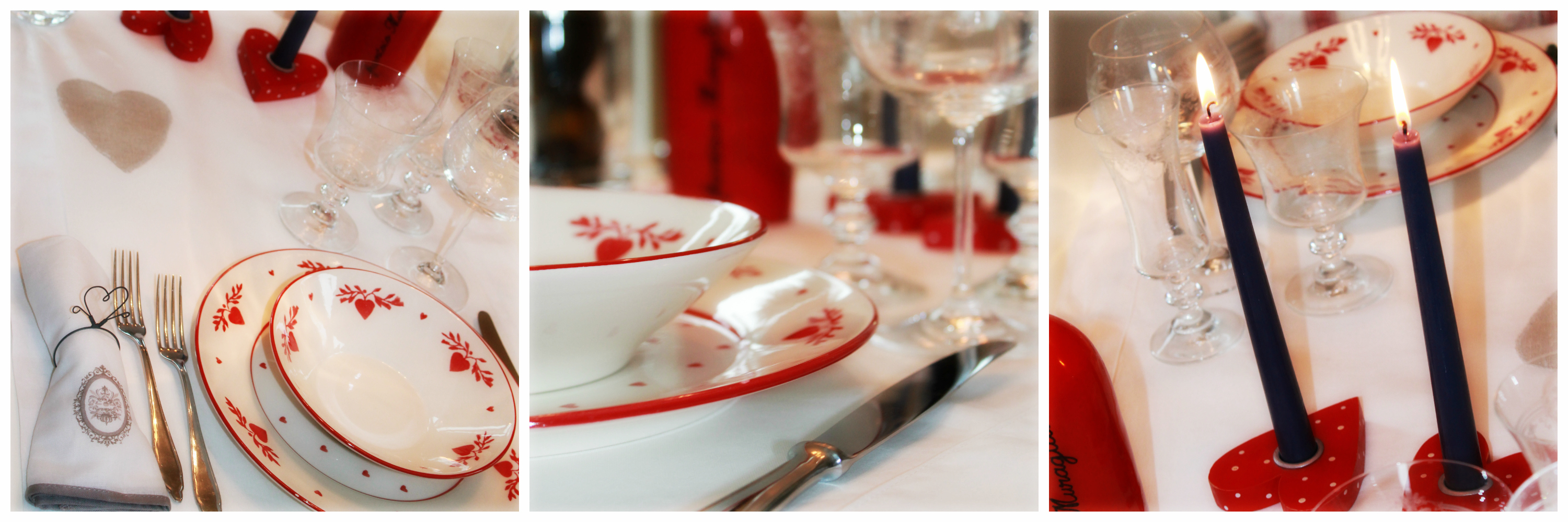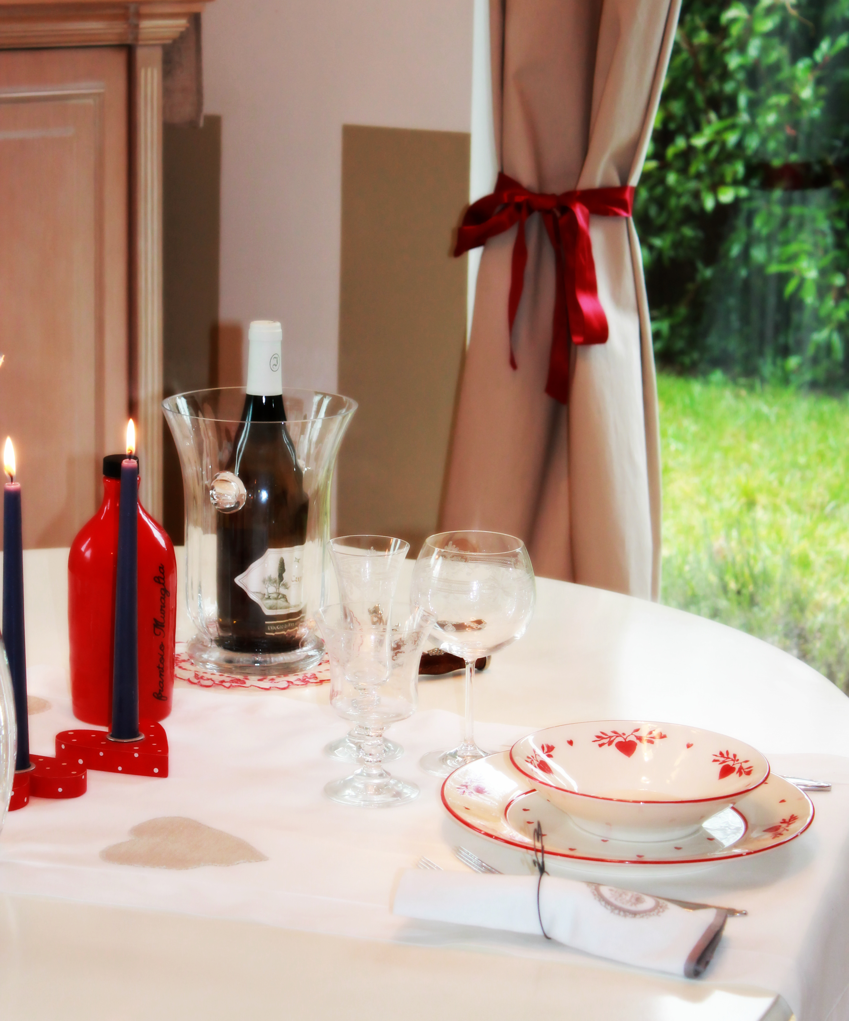 La mia table avrà sicuramente un tocco di rosso, il colore dell’amore e poi cuori in quantità, nei piatti di Côté Table, nel runner “Madame Eleonora”, nei ferma tovaglioli – collezione vintage – e ancora nei porta candela di Sia Home.